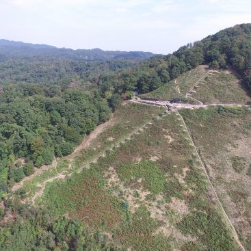 約半日拘束での撮影となりました。山の中を中心に移動を行い、ドローンが飛ばしにく環境では地上カメラ。開いた場所ではドローンを用いて撮影を行なっております。