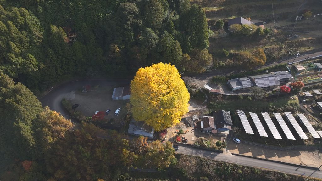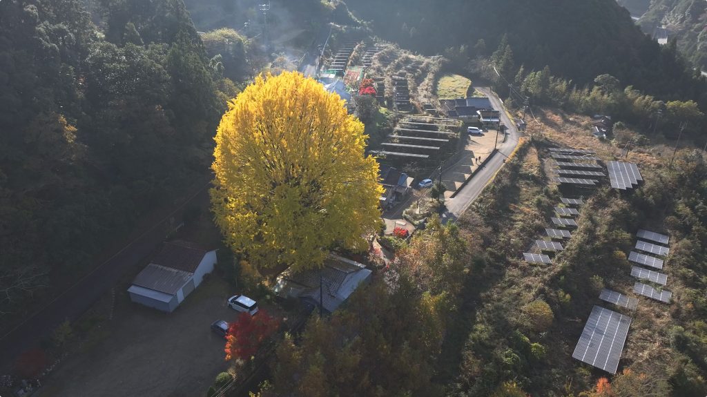 奈良・初瀬のイチョウにて撮影|黄金に染まる早朝の風景を背景に